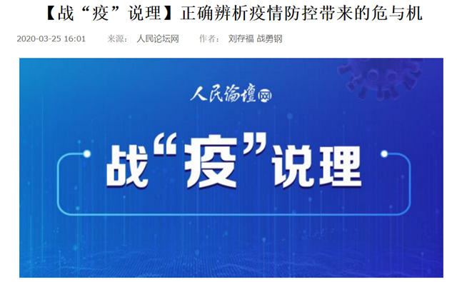 编辑:吴楠 审核:刘晓俏 阅读次数:原文标题:【战“疫”说理】正确辨析疫情防控带来的危与机