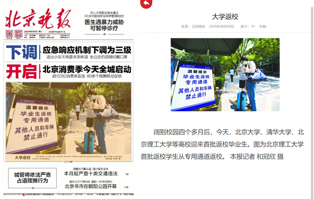 首页» 新闻网» 媒体贝博» 媒体理工 大学返校 发布日期: 2020-06-08 供稿:北京晚报 编辑:吴楠 审核:刘晓俏 阅读次数: 原文标题:大学返校 原文链接:http://bjwb.bjd.com.cn/html/2020-06/06/content_12465352.htm 阔别校园四个多月后,今天,北京大学、清华大学、bb贝博艾弗森官方网站等高校迎来首批返校毕业生。图为bb贝博艾弗森官方网站首批返校学生从专用通道返校。 分享到: 最新新闻 精彩推荐