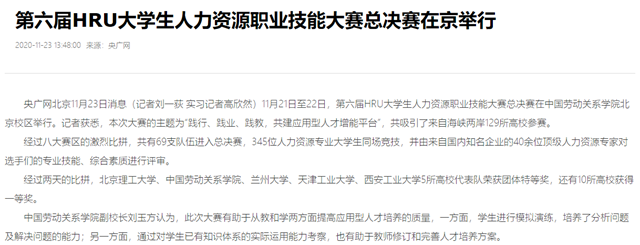 编辑:吴楠 审核:刘晓俏 阅读次数:原文标题:第六届HRU大学生人力资源职业技能大赛总决赛在京举行