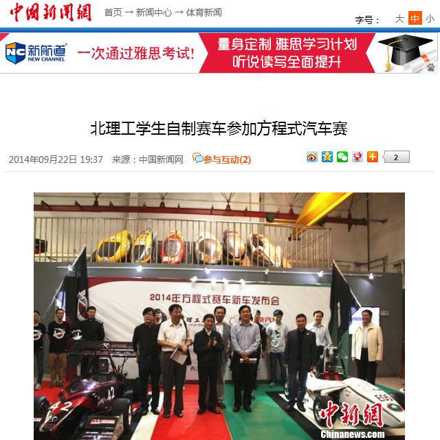 2. 中国新闻网 《bb贝博学生自制赛车参加方程式汽车赛》 2014年9月22日