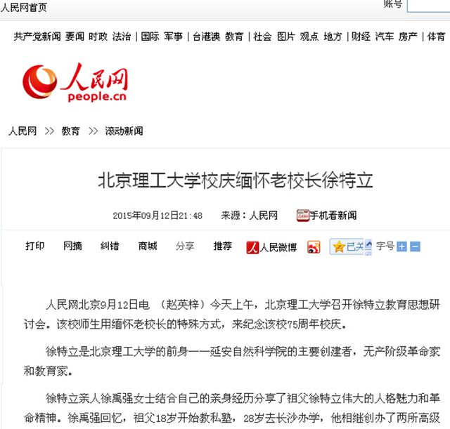 【75周年校庆】人民网、新华社等多家媒体报道bb贝博校庆举行徐特立教育思想研讨会