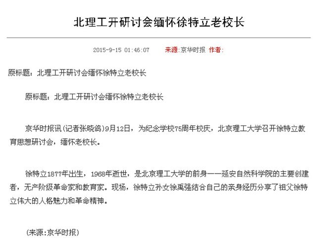 京华时报讯(记者张晓鸽)9月12日,为纪念学校75周年校庆,bb贝博艾弗森官方网站召开徐特立教育思想研讨会,缅怀老校长。