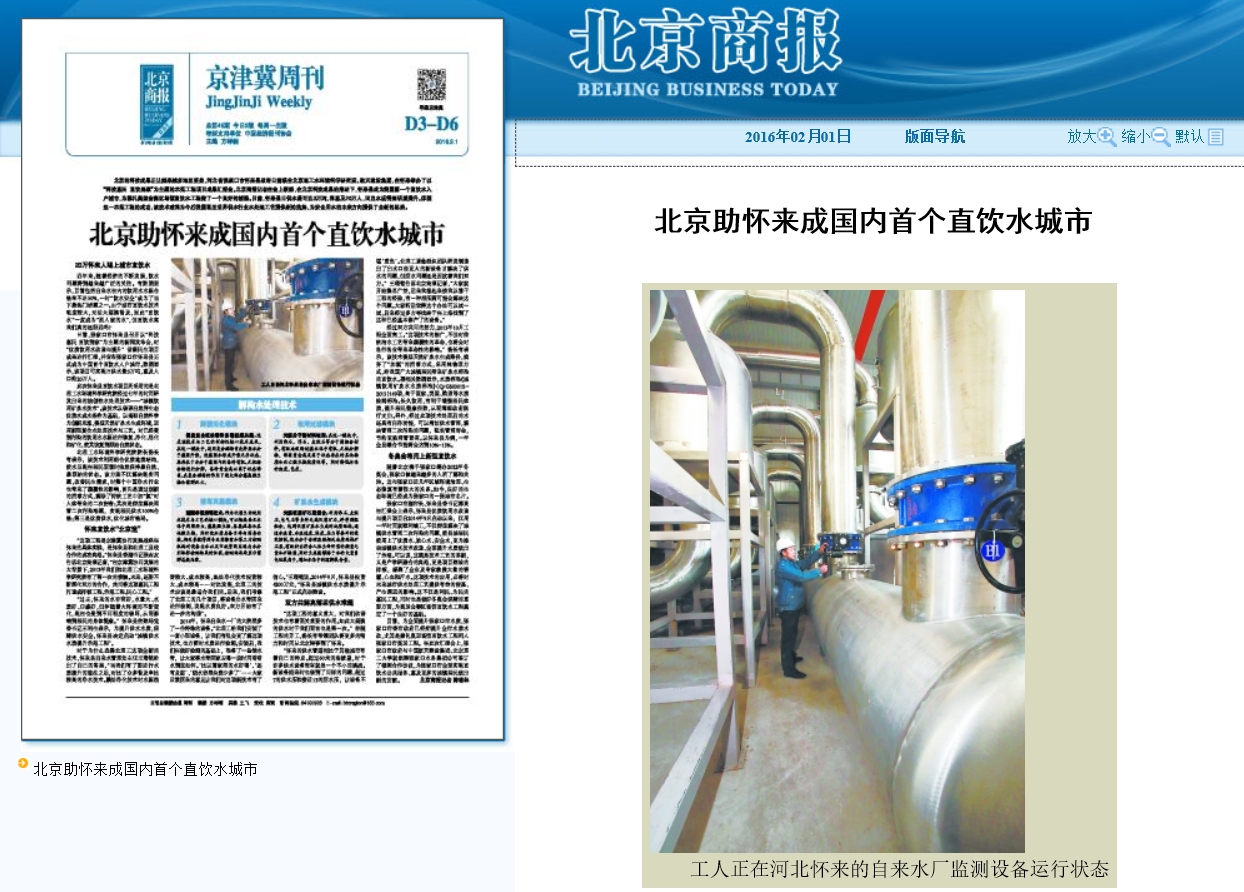 【北京商报】bb贝博助怀来成国内首个直饮水城市