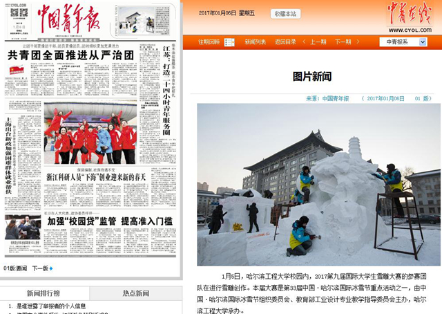 【中国青年报·报眼】图片新闻|bb贝博雪雕队出征2017年第九届国际大学生雪雕大赛