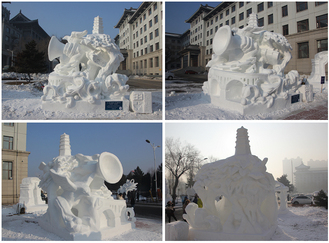 1月5日,哈尔滨工程大学校园内,2017第九届国际大学生雪雕大赛的参赛团队在进行雪雕创作。本届大赛是第33届中国·哈尔滨国际冰雪节重点活动之一,由中国·哈尔滨国际冰雪节组织委员会、教育部工业设计专业教学指导委员会主办,哈尔滨工程大学承办。