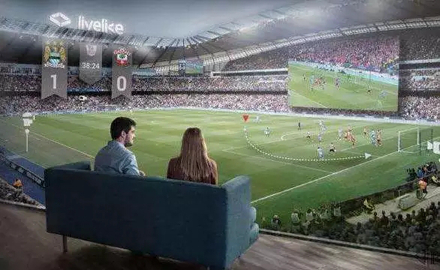 此外,还有体育赛事直播。“运用多台不同角度的摄像机,必要时加入无人机拍摄,可以三维重建整个比赛空间场景。利用VR技术,观众可以在足球场的任意角度去观看比赛,甚至可以‘站’在足球场中间。”