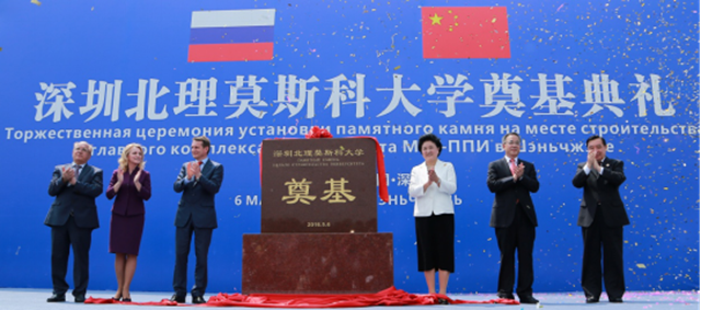 2016年5月,深圳贝博莫斯科大学奠基典礼在学校永久校区隆重举行,中共中央政治局委员、国务院副总理刘延东和俄罗斯杜马主席纳雷什金共同为奠基石揭幕。