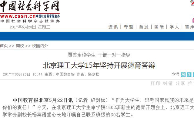 【中国社会科学网】bb贝博艾弗森官方网站15年坚持开展德育答辩