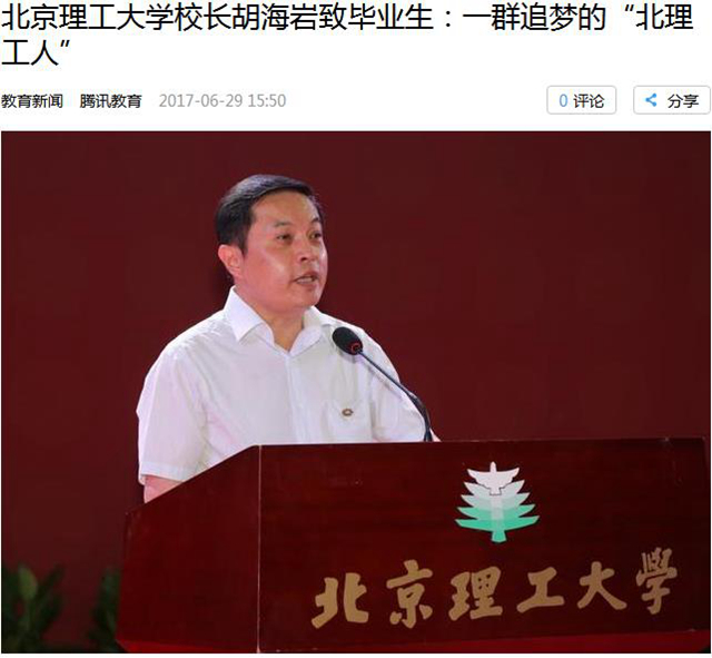 【腾讯教育】bb贝博艾弗森官方网站校长胡海岩致毕业生:一群追梦的“bb贝博人”