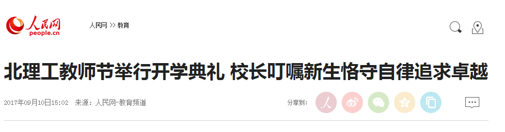 【人民网】bb贝博教师节举行开学典礼 校长叮嘱新生恪守自律追求卓越