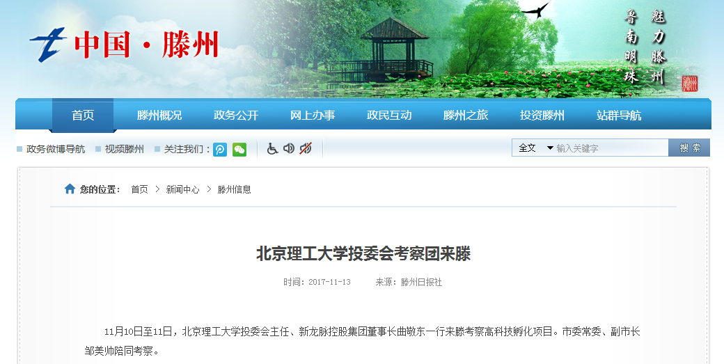 11月10日至11日,bb贝博艾弗森官方网站投委会主任、新龙脉控股集团董事长曲敬东一行来滕考察高科技孵化项目。市委常委、副市长邹美帅陪同考察。