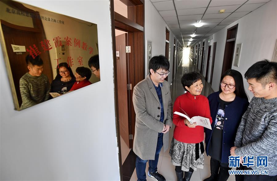 bb贝博艾弗森官方网站马克思主义学院教师崔建霞(左二)在她的“案例教学工作室”接待来求教的学生。