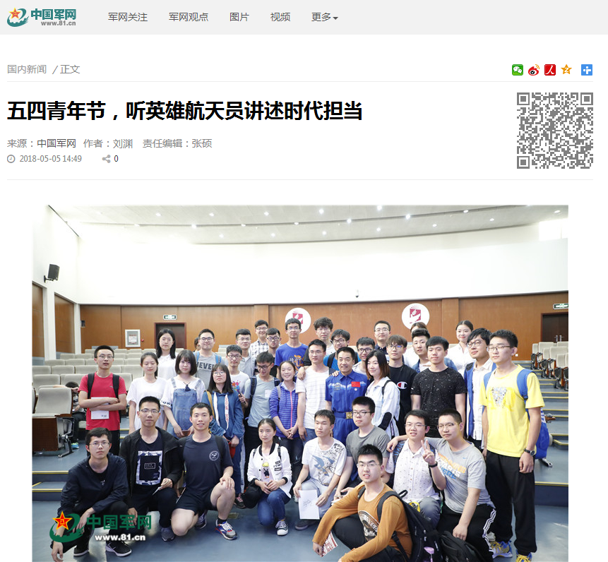 【中国军网】五四青年节,在bb贝博听英雄航天员讲述时代担当