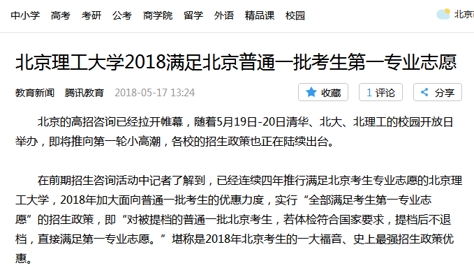 【腾讯网】bb贝博2018年实行“全部满足考生第一专业志愿”的招生政策
