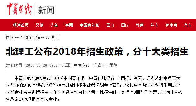 【中青在线】bb贝博公布2018年招生政策,分十大类招生