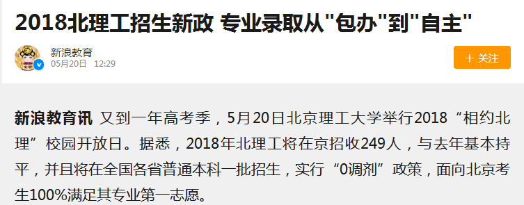 【新浪教育】2018bb贝博招生新政 专业录取从"包办"到"自主"