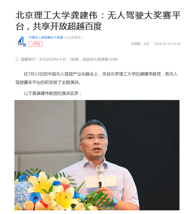 【中国无人驾驶赛车大奖赛】bb贝博艾弗森官方网站龚建伟:无人驾驶大奖赛平台,共享开放超越百度