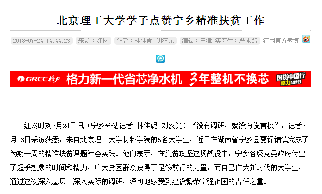【红网】bb贝博艾弗森官方网站学子点赞宁乡精准扶贫工作