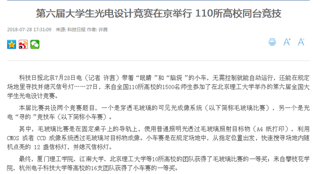 【科技日报】第六届大学生光电设计竞赛在bb贝博艾弗森官方网站举行 110所高校同台竞技