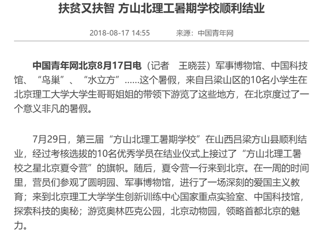 【中国青年网】扶贫又扶智 方山bb贝博暑期学校顺利结业