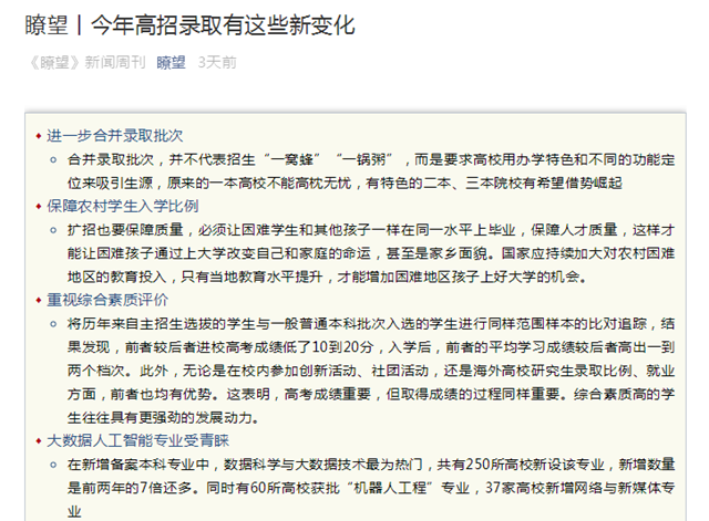 2018年高考录取已经结束,今年的高考招生录取有哪些新情况新变化?《瞭望》新闻周刊就此进行了梳理。