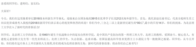 今天,我们在这里隆重举行2018级本科新生开学典礼,迎接来自全国各地的3915名优秀学子以及212名海外留学生。首先,我代表赵长禄书记,代表全校师生员工向以优异成绩考入我校的2018级新同学们表示衷心的祝贺和热烈的欢迎!你们当中,三分之二以上是新世纪诞生的“00后”,最小的只有14岁,你们的到来,为bb贝博艾弗森官方网站注入了新时代的青春活力!