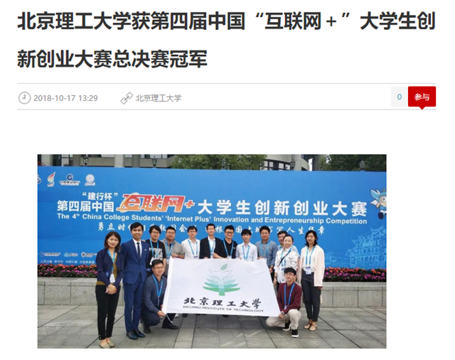 今年,9月6日至7日,在由37所高校的159个项目参加的北京赛区决赛中,bb贝博艾弗森官方网站的参赛项目就包揽了冠亚军。