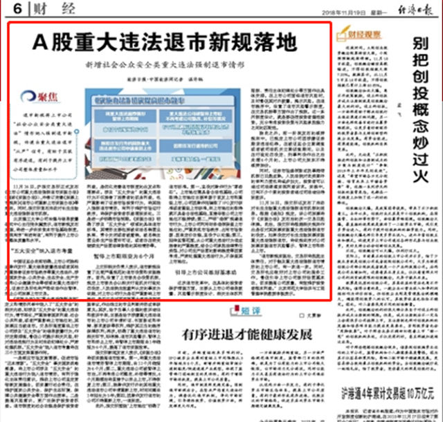 11月16日,沪深交易所正式发布《上市公司重大违法强制退市实施办法》(简称《实施办法》),并修订完善《股票上市规则》《退市公司重新上市实施办法》等规则。同时,深交所宣布启动对长生生物重大违法强制退市机制。