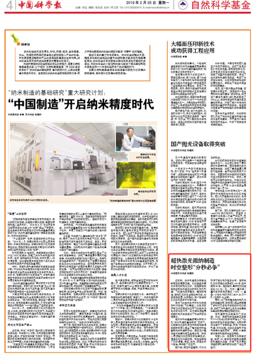 【中国科学报】超快激光微纳制造时空整形“分秒必争”