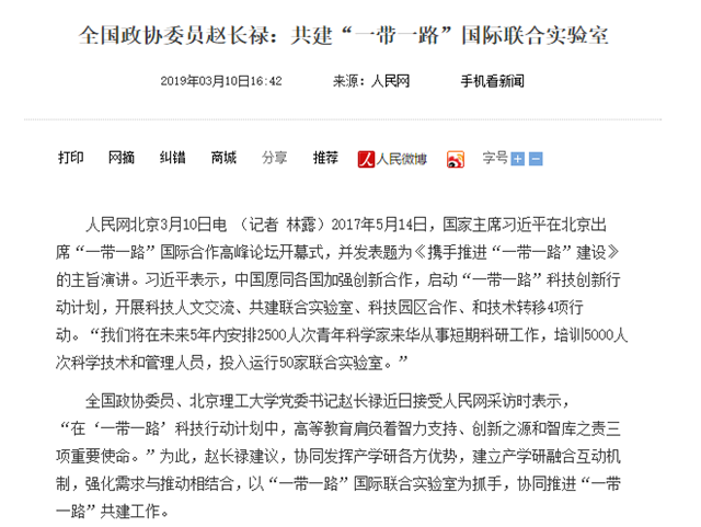 【两会▪人民网】赵长禄委员:共建“一带一路”国际联合实验室