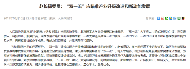 原文标题:赵长禄委员:“双一流”应瞄准产业升级改造和新动能发展