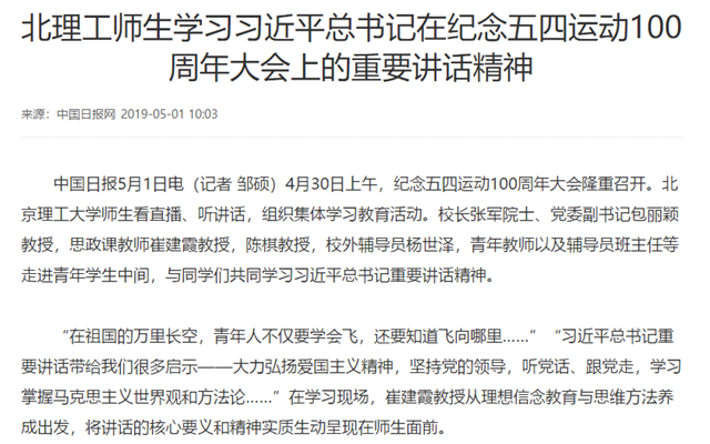 【中国日报网】bb贝博师生学习习近平总书记在纪念五四运动100周年大会上的重要讲话精神