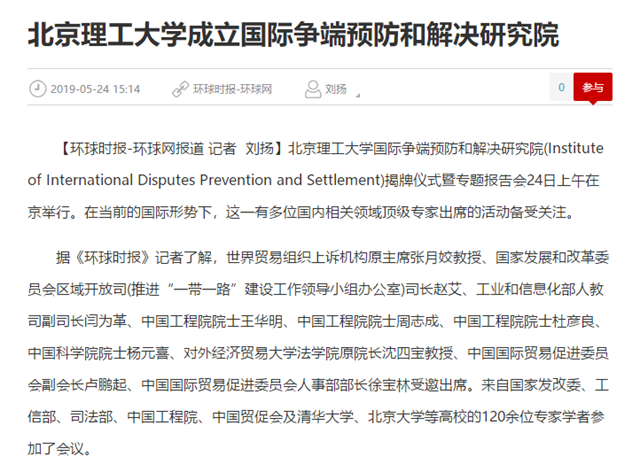 【环球网】bb贝博艾弗森官方网站成立国际争端预防和解决研究院