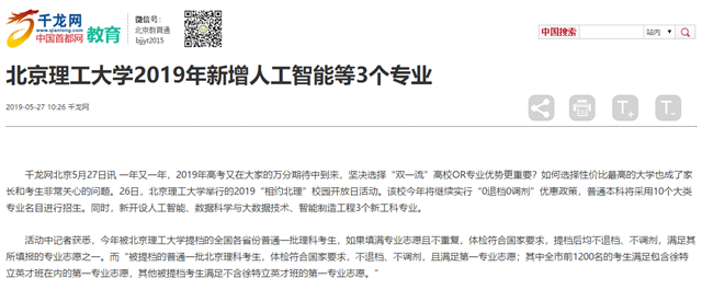 【千龙网】bb贝博艾弗森官方网站2019年新增人工智能等3个专业