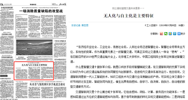 【工人日报】院士描绘智慧交通未来愿景——无人化与自主化是主要特征