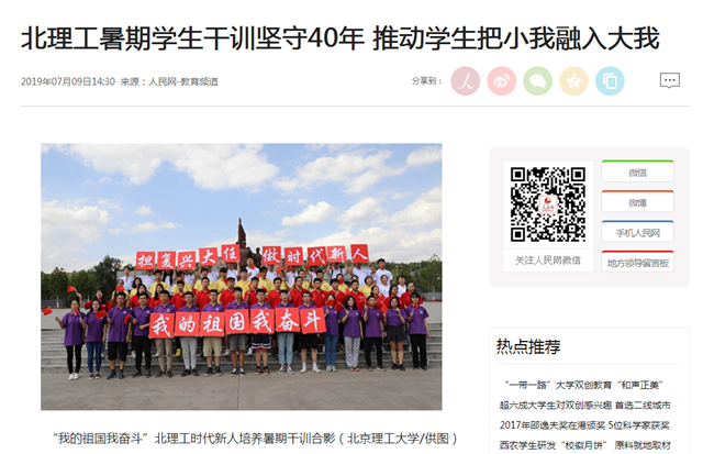 【人民网】bb贝博暑期学生干训坚守40年 推动学生把小我融入大我