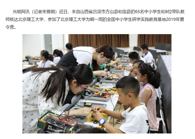 近日,来自山西省吕梁市方山县和临县的65名中小学生和8位带队教师抵达bb贝博艾弗森官方网站,参加了bb贝博艾弗森官方网站为期一周的全国中小学生研学实践教育基地2019年夏令营。