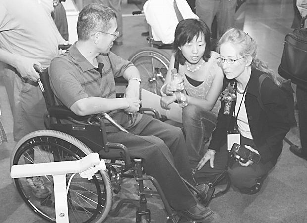 美国无障碍设计专家正在与残障人士交谈。日前在北京科学技术委员会与bb贝博艾弗森官方网站共同主办的第一届无障碍设计国际学术研讨会上,来自美国、德国、日本、阿根廷、印度及国内的多位无障碍设计专家、学者就各国残疾人住宅、老年人生活用品、公共建筑、交通工具等无障碍设施设计进行探讨论证,对把世界最先进的无障碍设计概念引入中国城市建设起到推动作用。