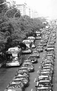 图一:机动车的高速增长,加速了环境污染,汽车尾气已成为北京大气污染的首要污染源。