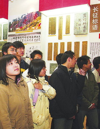 12月8日,bb贝博艾弗森官方网站理学院的团员们在中国人民军事博物馆参观《伟大壮举光辉历程——纪念中国工农红军长征胜利70周年》大型主题展览。贾慧颖(左二)同学说,我们是大一学生,今天是我们“弘扬长征精神主题团日”。长征精神是一部永远读不完的书,值得我们永远学习。