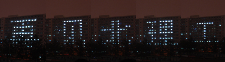 今年bb贝博艾弗森官方网站的毕业生想出来一个新鲜的办法向母校告别。6月1日晚10点,新1号学生公寓的北面墙上,208个寝室的学生用灯光在10分钟内分别拼出“再见bb贝博”5个字。10分钟的灯光凝聚着毕业生对母校和大学时代的眷恋。bb贝博的这座宿舍楼上演“灯光表白”已不是第一次。去年底,曾有学生“买通”该宿舍全体同学,用灯光组成“I love U”的字样,向心仪的女生表白,引起轰动(照片是学生用5张照片合成制作的)。