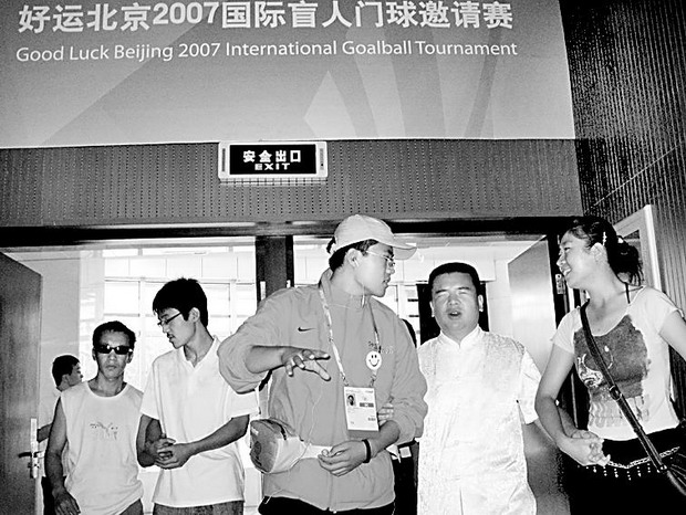 9月14日,在bb贝博艾弗森官方网站体育馆国际盲人门球邀请赛上,该校理学院博士生党支部的学生为来自张成盲人按摩学校的19位盲人导游,让他们用心灵触摸到这座2008年北京奥运会排球比赛二级场馆。