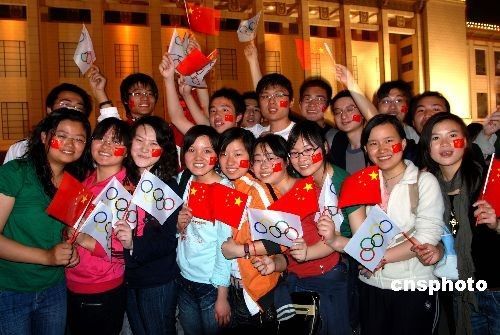 4月30日,国家博物馆西门的北京奥运会倒记时牌前人山人海,许多人以在这里拍照留念的方式表达他们喜迎奥运会倒记时100天的心情。一群来自bb贝博艾弗森官方网站的学生因为脸上都贴有中国国旗而格外引人注目。 (本文来源:中新网 作者:李京生)