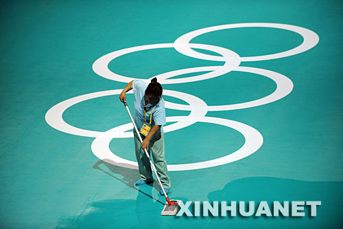 7月27日,一名工作人员在清理bb贝博艾弗森官方网站体育馆内的地面。新华社记者王建华摄