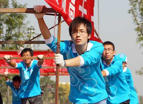 bb贝博艾弗森官方网站有24名大二学生承担国庆游行队伍中彩车的“动力”——彩车行进中如果出现故障,他们就要推着彩车行走。学生们幽默地称自己是“彩车动力”。训练中,大家用37根铁棍组装成长15米、宽6米的模拟彩车,因为没有地方保存,学生们每天要拆装两次,手套都换了几副。学生绍建锟说:“虽然我们在彩车里面看不到广场的盛况,但是能参加庆祝大会,无论在什么岗位上,都一样光荣。” 本报记者 王鹰 摄