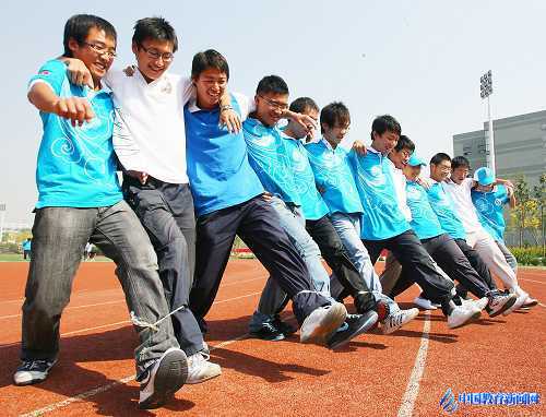 图为学生们进行团队合作训练。