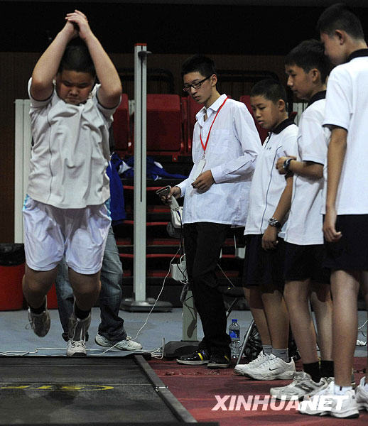 当日,北京市中小学生国家学生体质健康标准测试在bb贝博艾弗森官方网站举行。来自北京18个区县的近2000名学生随机抽签参加了台阶试验、立定跳远、肺活量、身高体重等项测试。新华社发