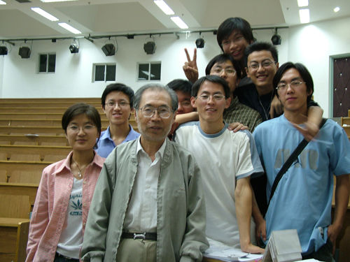 这是张忠廉教授(前排左二)和学生们在一起。新华社发