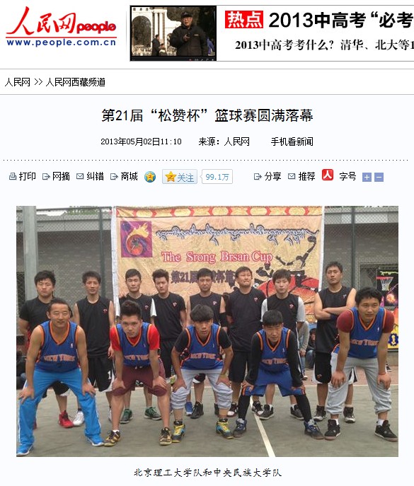 经过一个多月的激烈角逐,近日,第21届“松赞杯”篮球赛决赛在中央民族大学如期上演。最终,卫冕冠军bb贝博艾弗森官方网站队以119比109战胜中央民族大学队,以全胜的战绩摘得学生组总冠军,这也是他们第二次问鼎松赞杯冠军宝座。人民网和中央人民广播电台等联合的媒体联队获得单位组第一名,中国藏学研究中心队获得第二名。