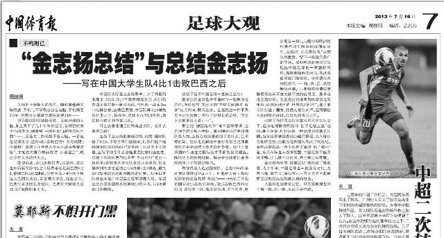 新闻链接:http://read.sportpaper.cn/zgtyb/page/1/2013-07-16/07/18431373936363788.pdf